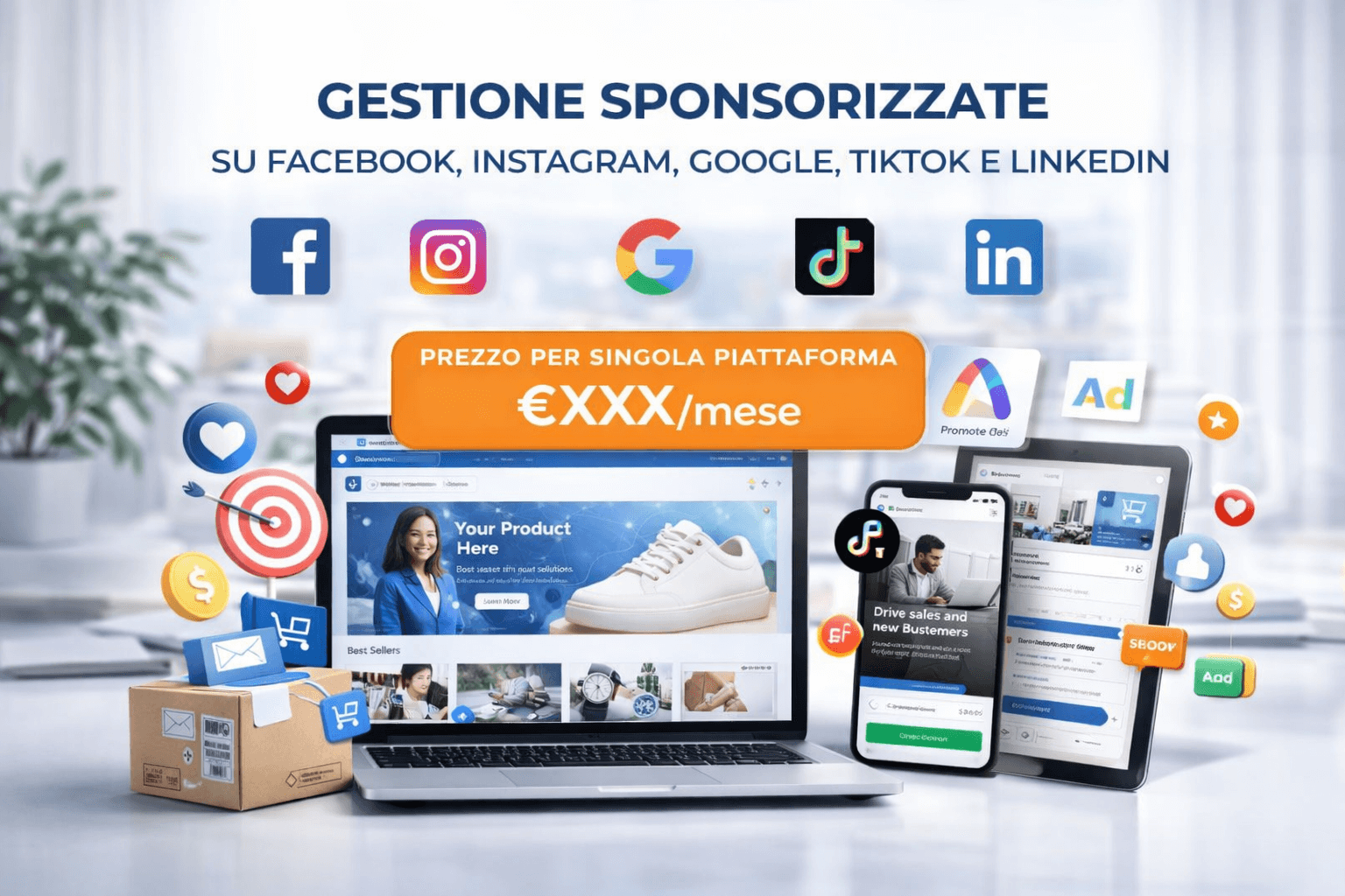 Gestione Sponsorizzate su Facebook, Instagram, Google, TikTok e LinkedIn